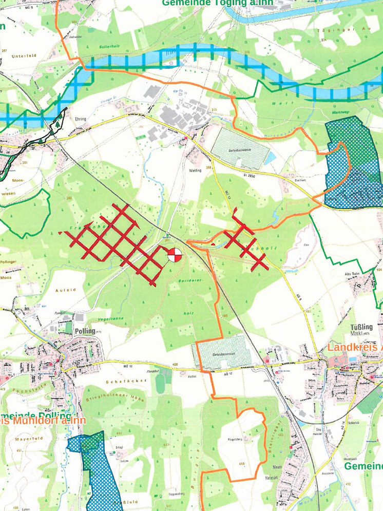 Im Windvorranggebiet W-32, auf Mühldorfer Gemarkung zwischen Polling und Weiding, planen wir einen Windpark mit 1 Anlage Typ Enercon E175-EP5. Auch hier läuft das Genehmigungsverfahren und wir rechnen in ca. 4 Jahren mit der Inbetriebnahme der Anlage.
